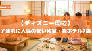 目的別 【ディズニー周辺】子連れに人気の安い和室・畳ホテル7選 ディズニー周辺で「和室に安く泊まりたい子連れファミリー」に向けて、おすすめホテル7選を紹介。布団で安心して寝られる和室や畳スペースのあるホテル、大浴場付きホテル、ディズニー送迎バスがある宿などをわかりやすく解説します。 2026.03.13 目的別